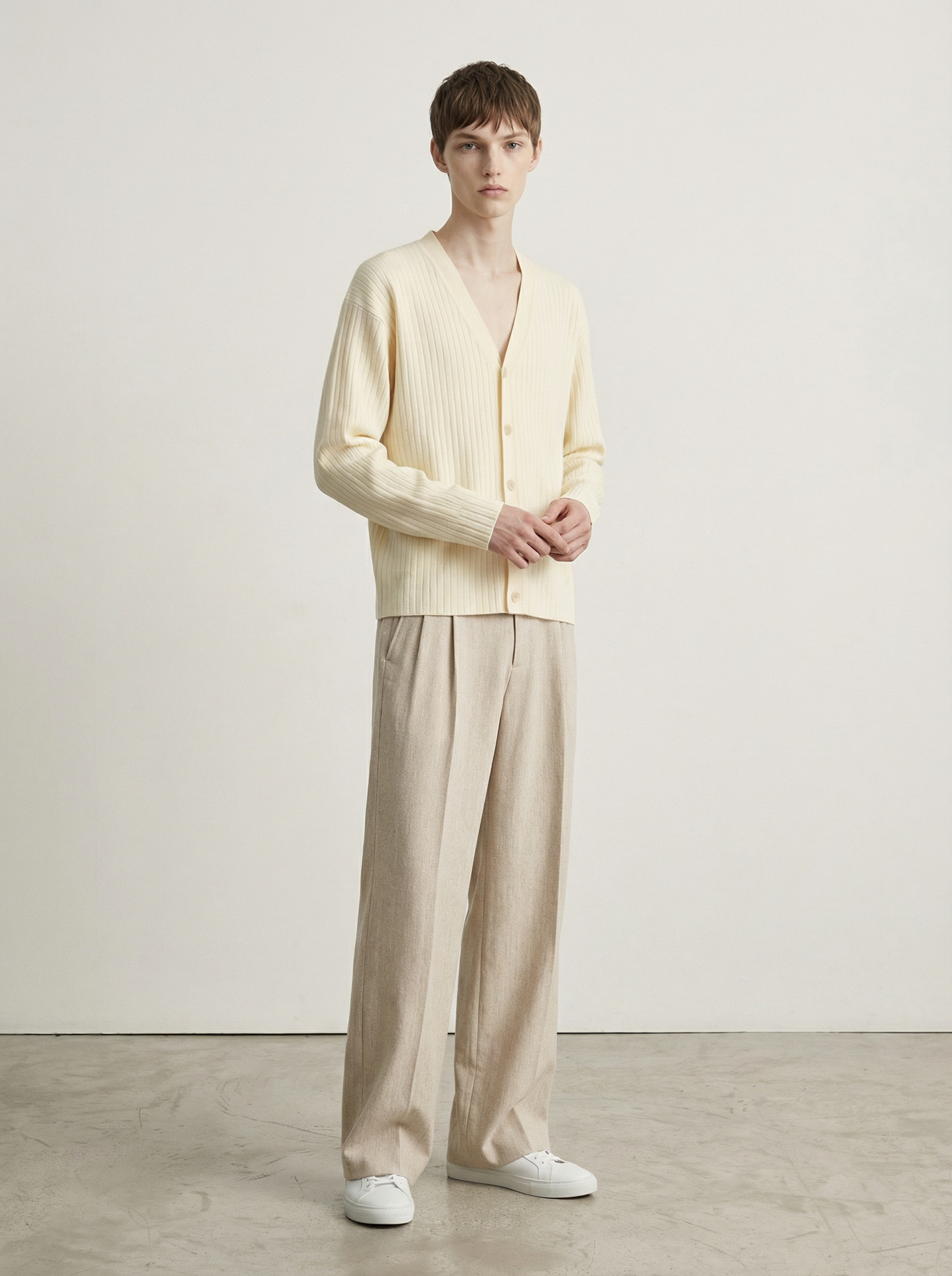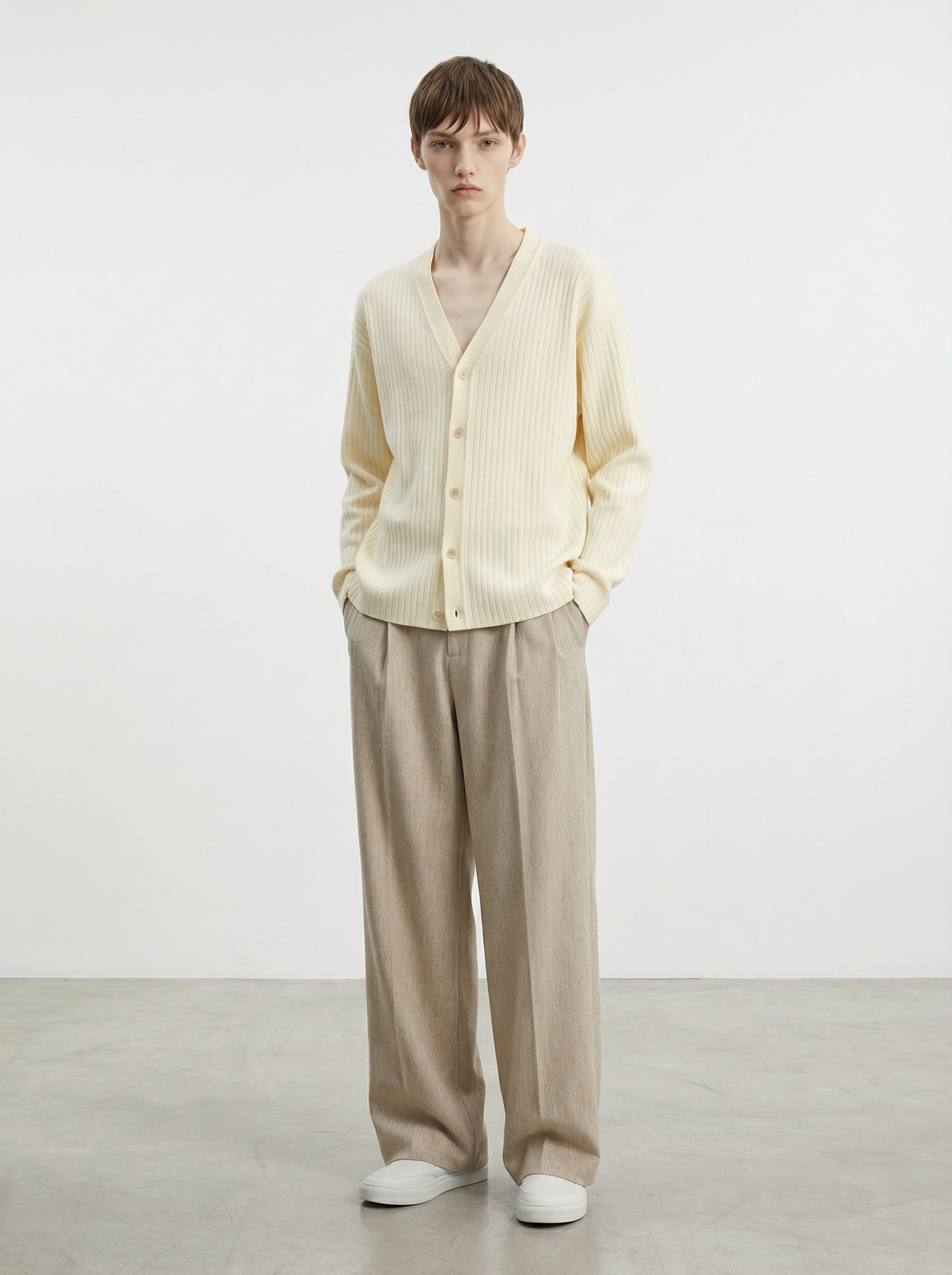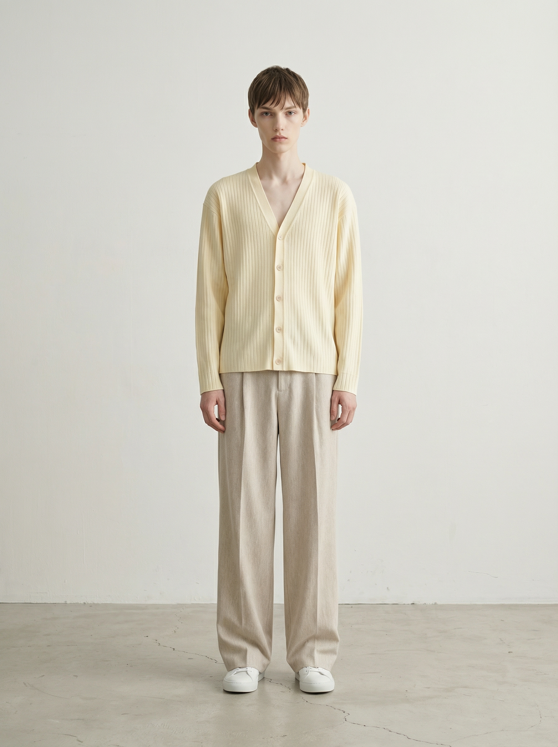 Bone Tissue Y-Neck Knit Cardigan