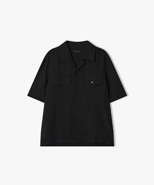 Open collar double stitch detail Harp Shirt
