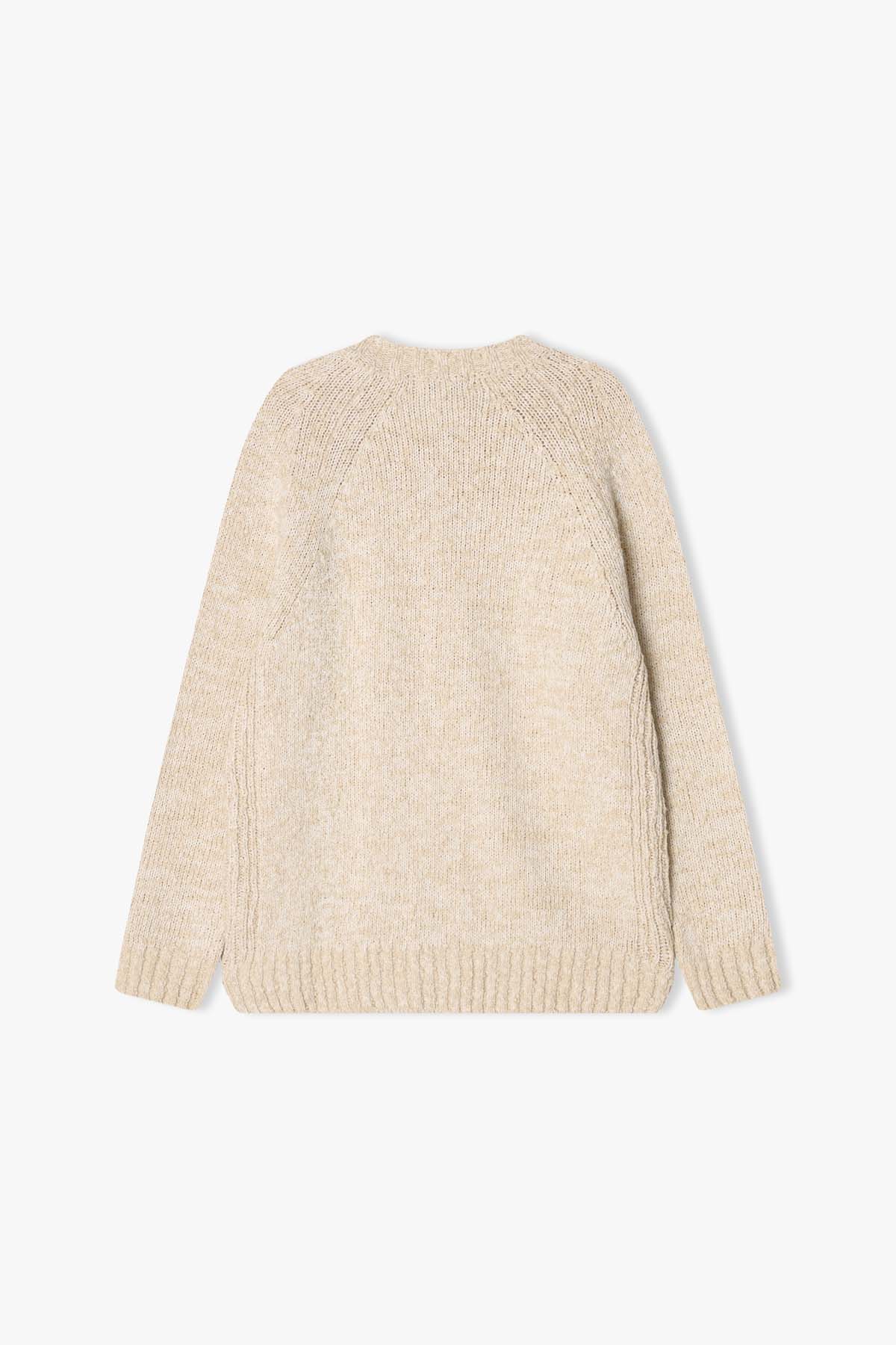 A raglan knit with a basic design, crafted in a melange fabric for a trendy look.