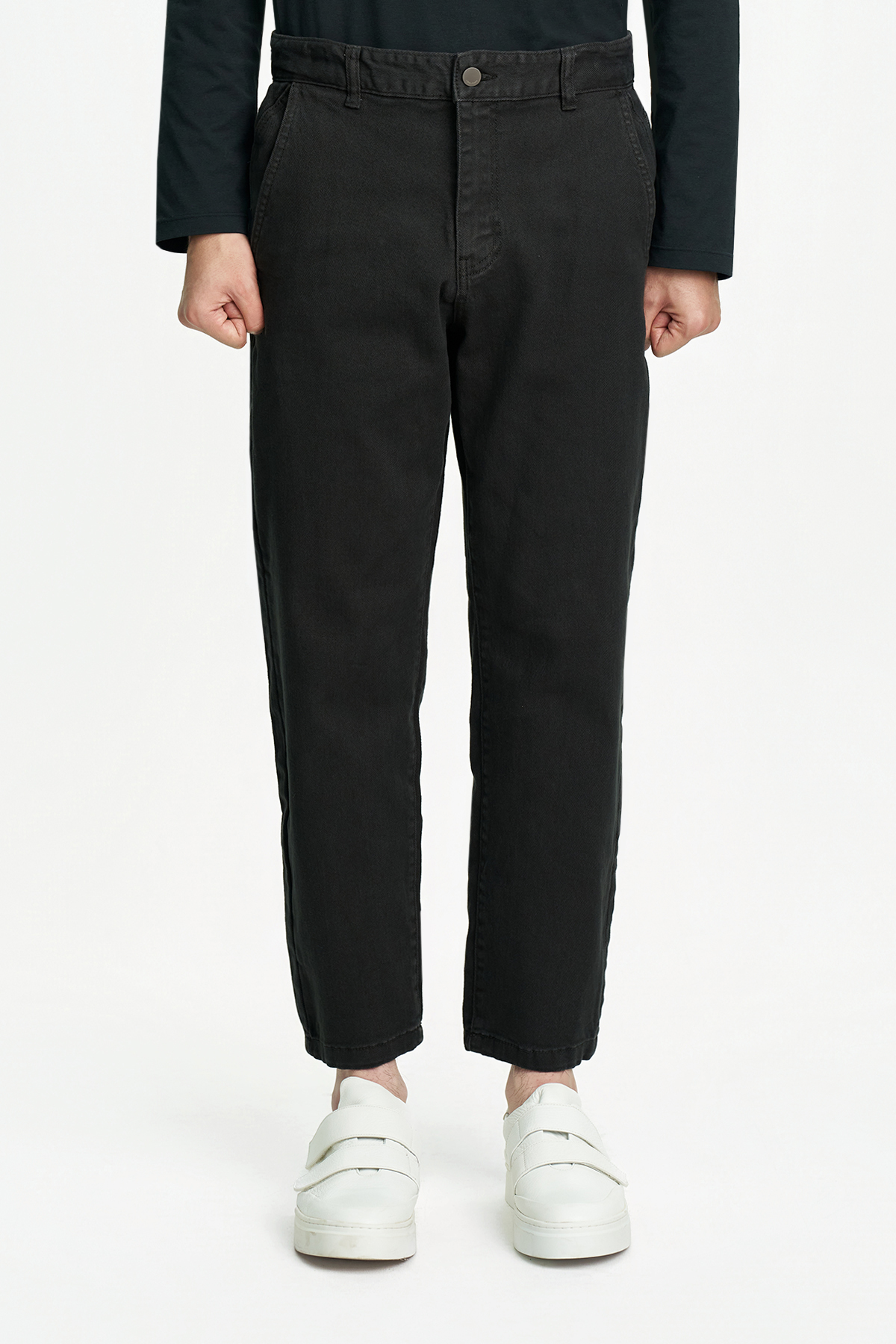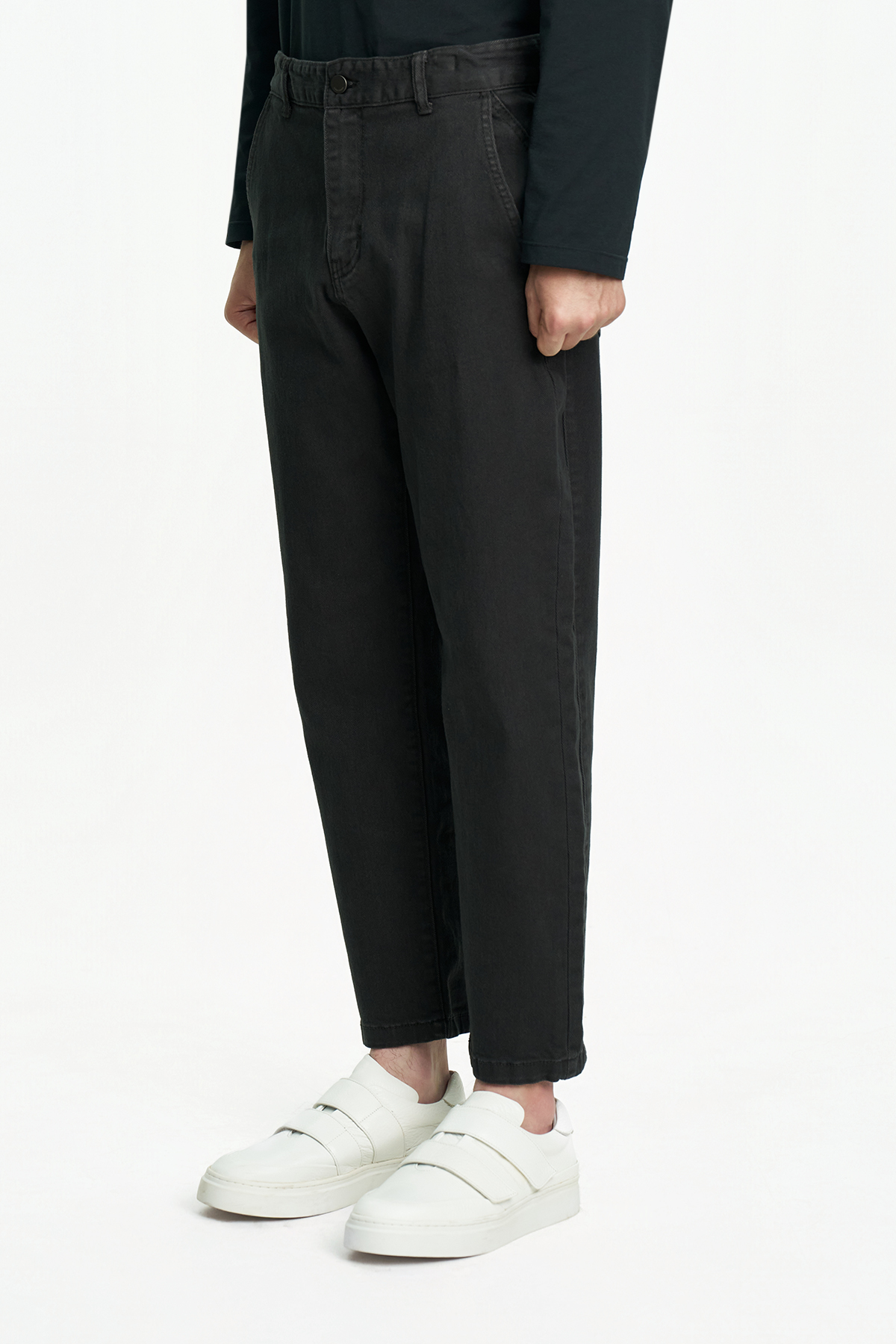 Tapered fit no-tuck cut-line pants