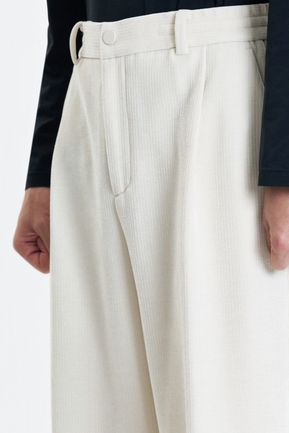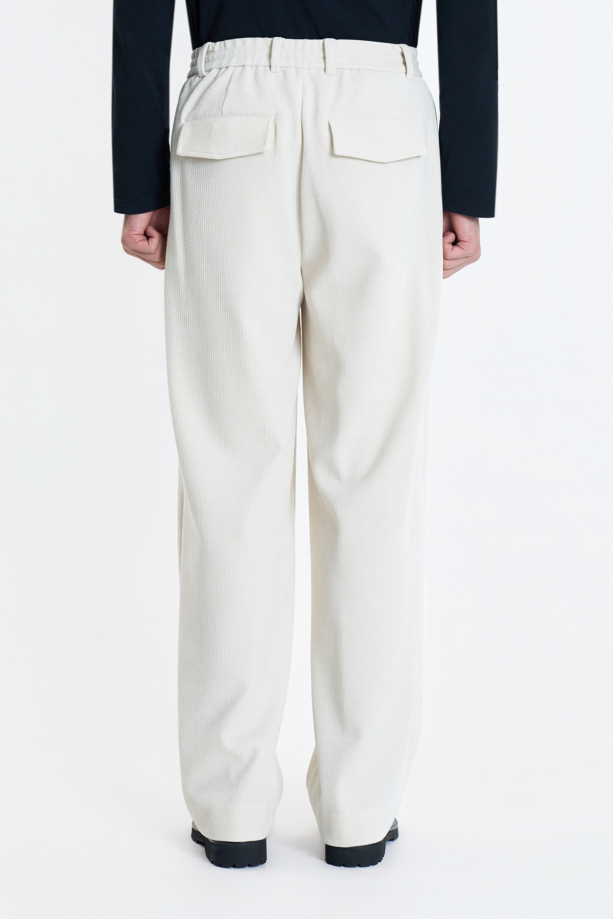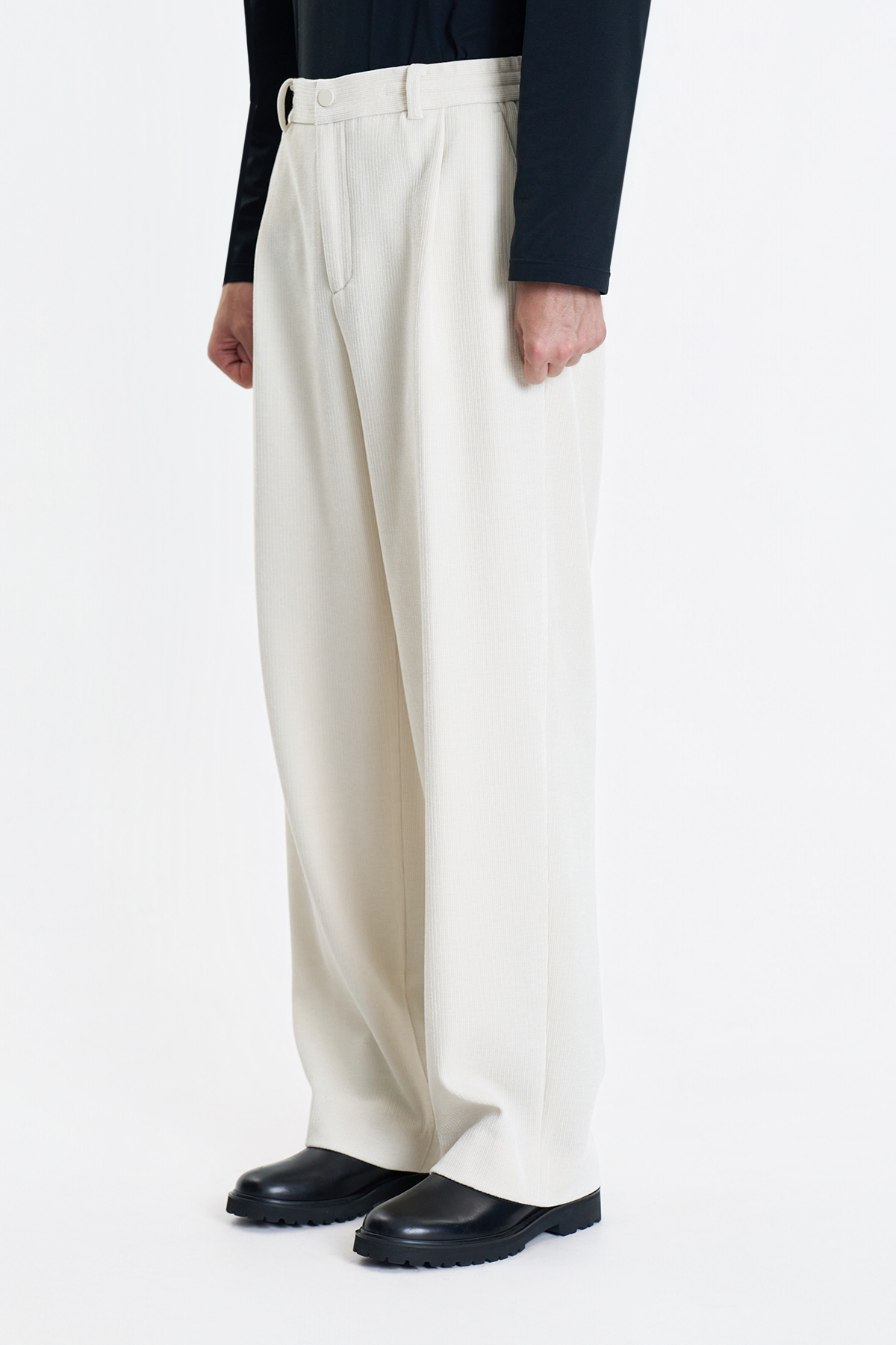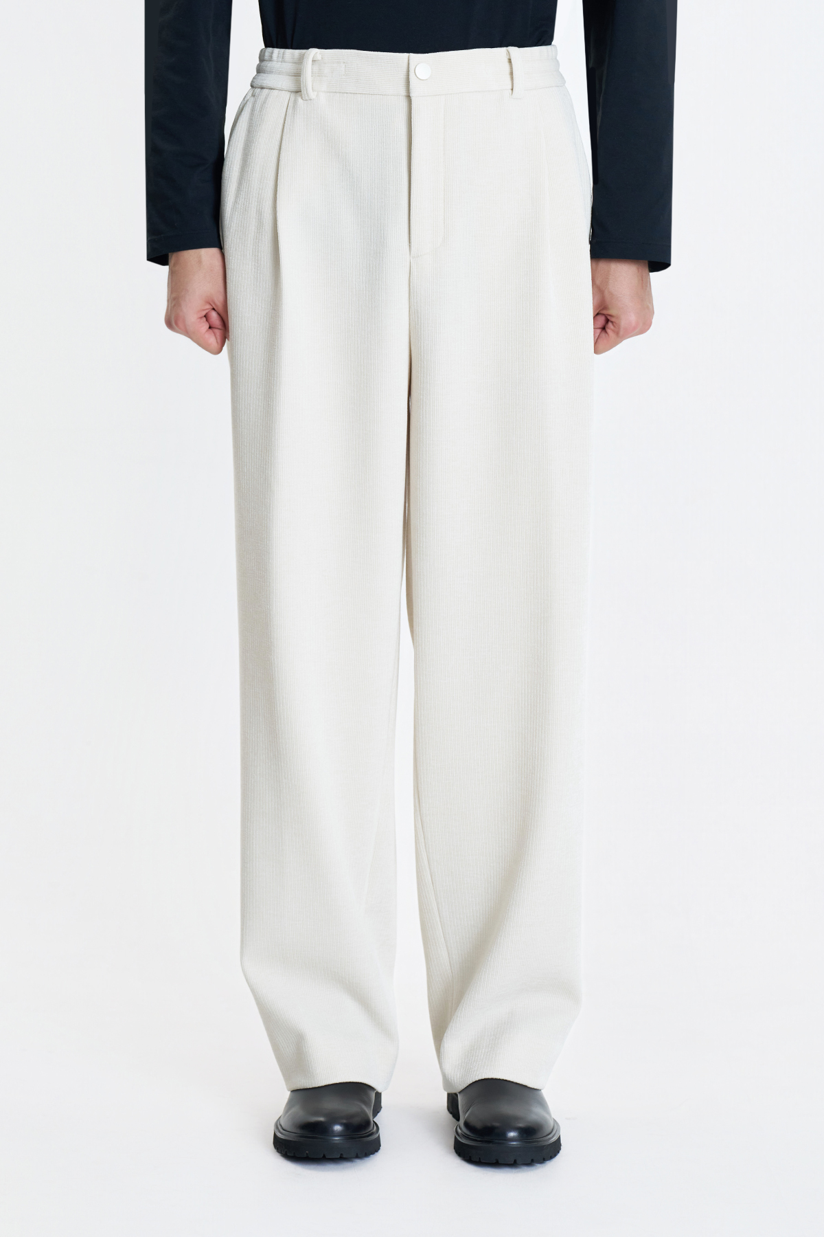 Semi-wide fit one-tuck string banding pants