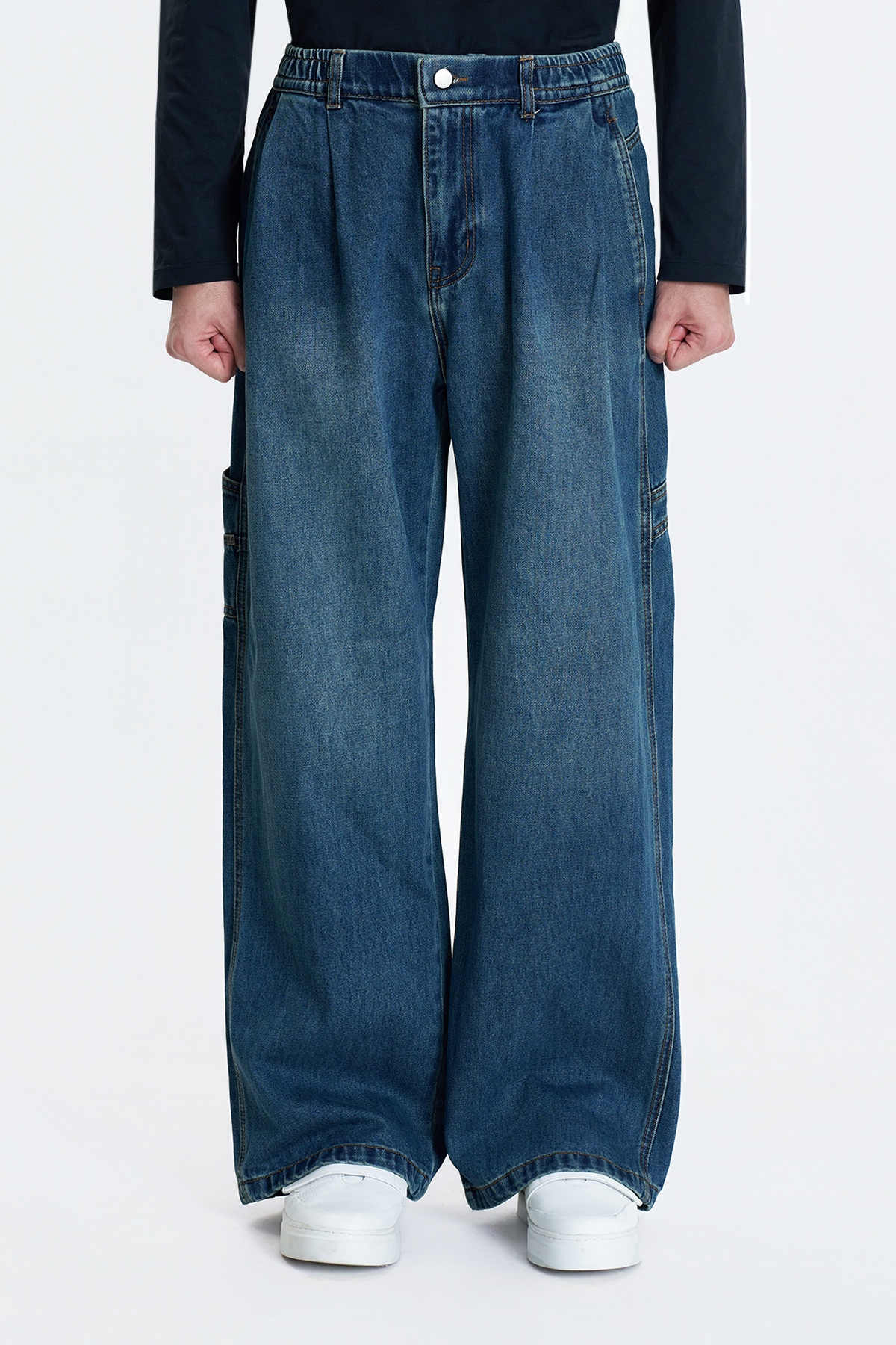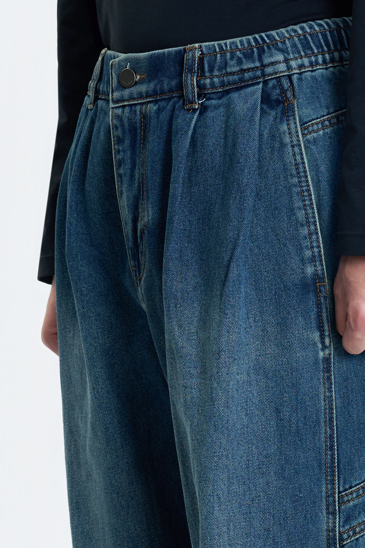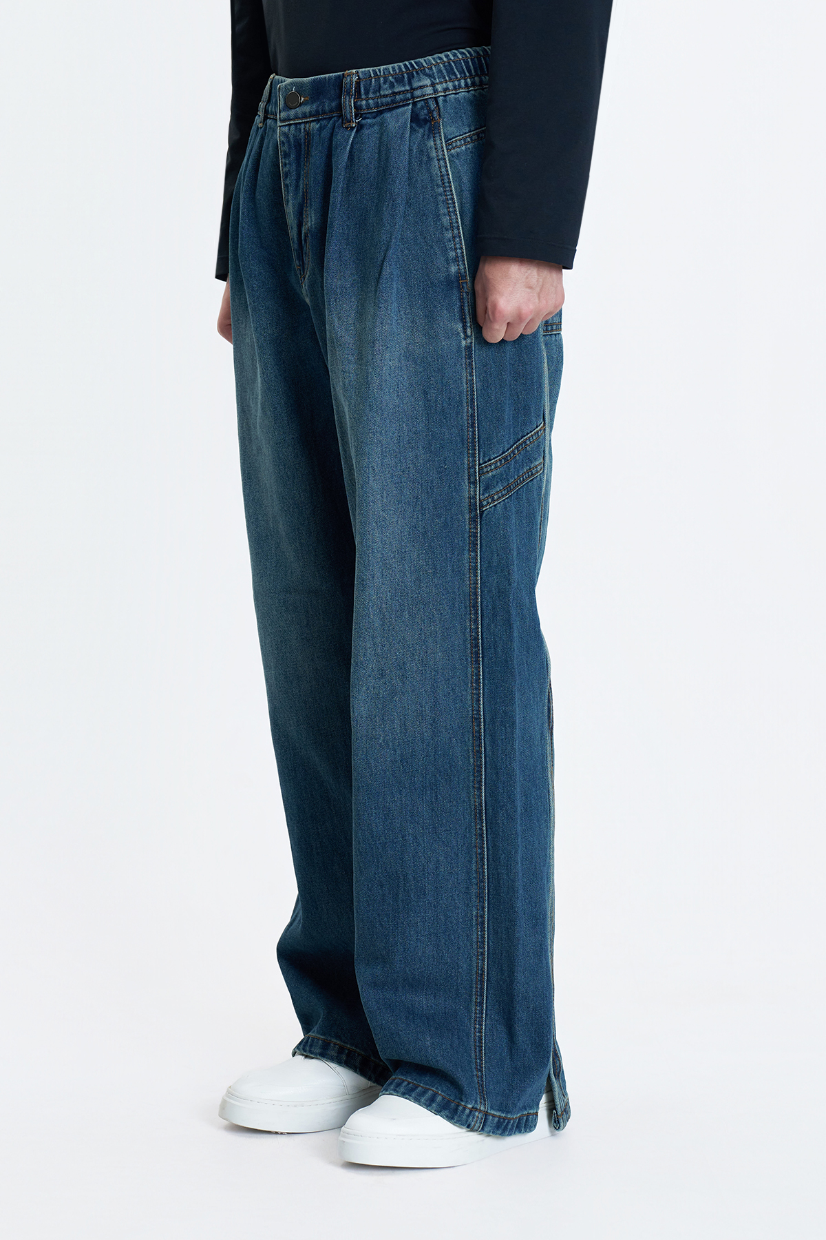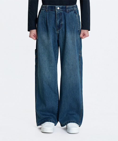 Two-Tuck Wide Denim Pants