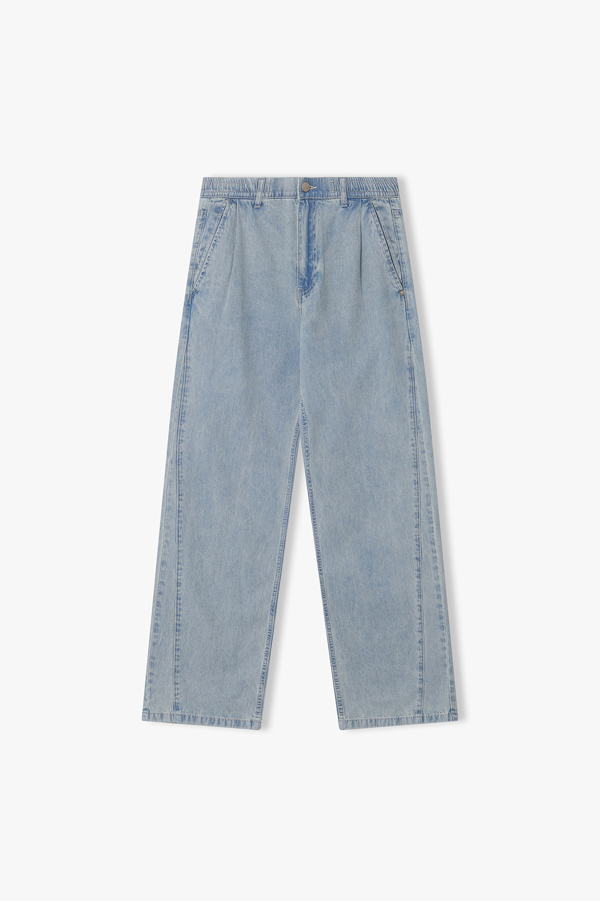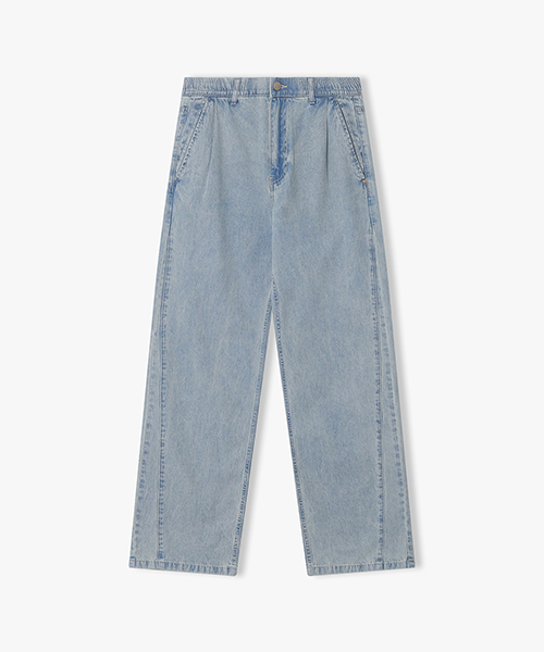 Semi-wide fit one-tuck denim pants
